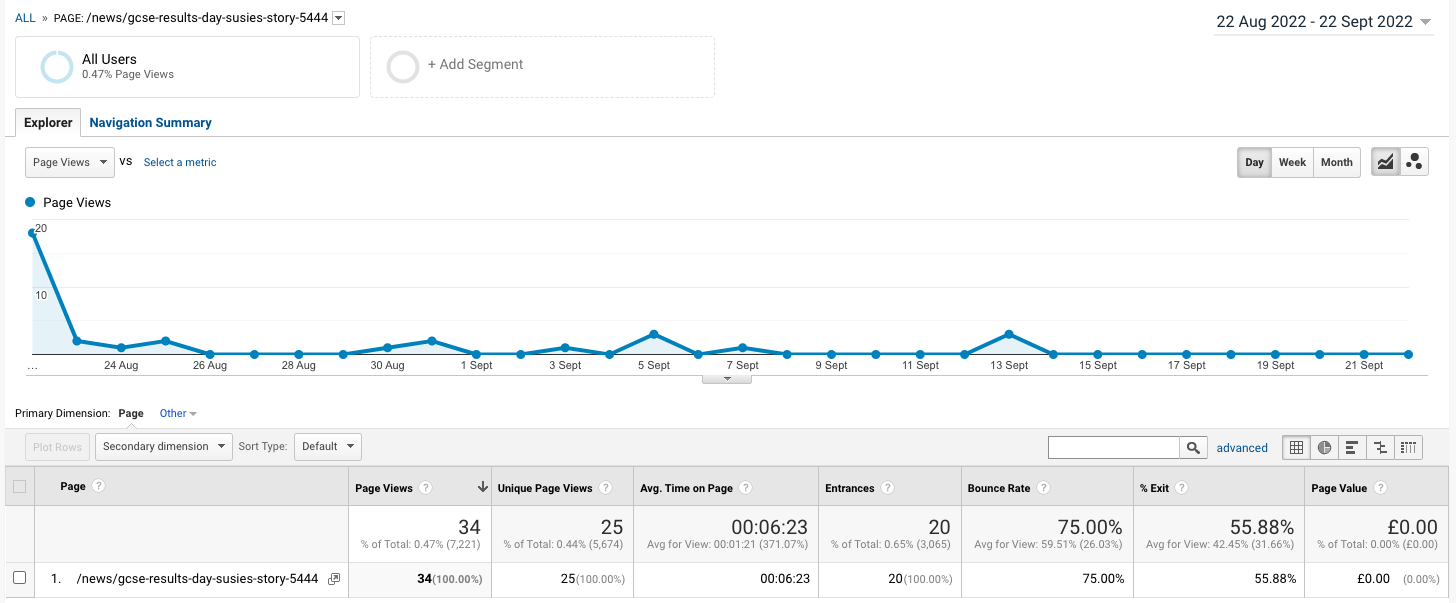 I wrote this article building up to the 22nd August, it has generated quite a bit of traction. Most of the insights came from the company website and socials. As you can see above the blog peaked on its day of release, getting around 20 reads, yet still later into the month we can see small spikes that show the content later down the line is still relevant and useful to readers.